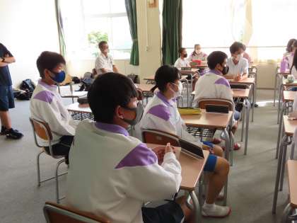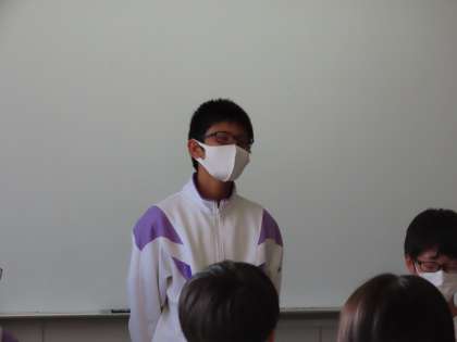 本日は前期最後の評議会でした。昨年度の後期から、生徒会活動の中心となって活動してきた3年生にとって、生徒会執行部や委員長たちにとって、自分たちが主となって行うのは今日が最後です。今年度の前期も、昨年度に引き続き、コロナ禍により思うような活動はできませんでした。しかし、最後のあいさつで、これまで中心となって活動してきた自分たちの思いを、1,2年生に伝えることができました。