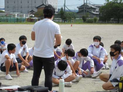 体育の授業では、サッカーが始まりました。班ごとに適したフォーメーションを考え実践するための練習方法や役割分担を話し合い活動を通して決めています。また、実際に実施してみて、よかったことや改善すべきことなどを、振り返りで把握して、次に生かしています。