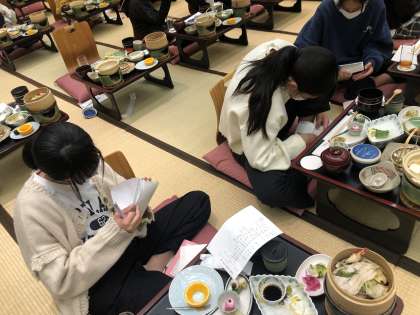 食事が終わった後、保護者からのお手紙を読んでいます。