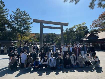 3組の生徒を乗せたバスが伊勢神宮に到着しました。