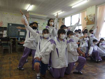 休み明けの月曜日のパフォーマンス練習、どのクラスもかなり仕上がってきました。完成間近です。気合い十分の1年生、残すところ2日の練習で、完璧な仕上がりをめざします。みんな頑張れ!!