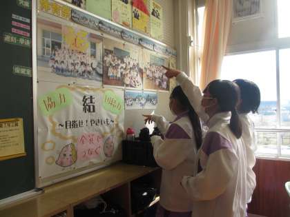 1年生 体育祭を終えて2 公開日 2021/10/29 更新日 2021/10/29 1年 1年2組の教室でも担任の先生がつくってくれた写真などをはった掲示物を嬉しそうに見合っていました。 いいね(2)