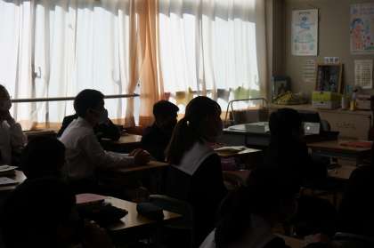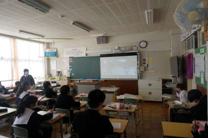 先日学年集会で上映された体育祭のふり返りムービーが教室でも上映されました。(欠席していて見えなかった生徒のため)教室でクラスメイトと一緒に見るとより親近感がわくものです。行事を終えてきずかれたクラスの温かい雰囲気が感じられた教室でした。
