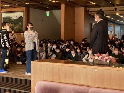 ホテルの方に感謝を込めてあいさつをしています。その後、ホテルを出発しました。