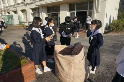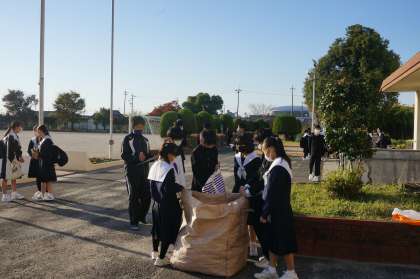 生活委員のあいさつ運動・アルミ缶回収の活動が先週から行われています。朝からたくさんのアルミ缶ご協力ありがとうございます。生活委員の生徒は朝早くから準備をし、集計作業をテキパキ行ってくれています。朝のあいさつはどの学年の生徒や先生方にもさわやかに行えているのがとてもいいなあと思います。今後もあいさつを大切にしていってほしいと思います。