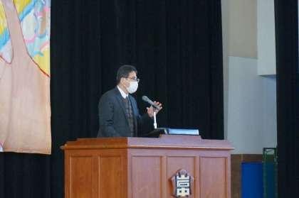 2学期の終業式、全校生徒で集まることができないので1・2年生で行われました。(前半は3年生)校長先生から先日の学年集会をうけてのお話もいただきました。多くの生徒の表彰があり、予定より時間が長くなりましたが、どの子も真剣に話を聞いている様子でした。岩崎中学校に入学してから9ヶ月、本当に成長したなぁとしみじみと感じられました。