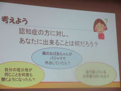 あなたが将来認知症になったら? 認知症の方にあなたが出来ることはどんなことがあるのか・・・? おじいさん、おばあさんの事を思い浮かべながら考えました。