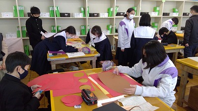生き生きとした表情で作業に取り組む子どもたち、「こんなにいい顔するんだ。」と思えるほどいい顔をしている子もいました。飾りつけ作業は来週にも行われます。生徒たちは楽しみしているようです。