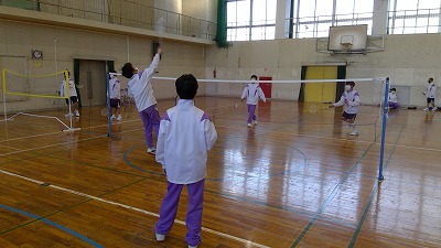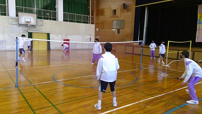 1年生の男子の体育では、バドミントンを行っています。なかなかラリーがつながらず、思うようにできないことも多いようですが、それでもとても楽しそうに取り組んでいる様子が印象的でした。