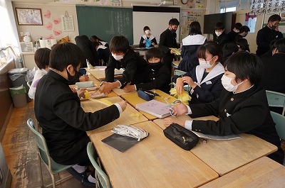 予餞会に向けて 1年生 公開日 2022/01/21 更新日 2022/01/21 1年 今週から予餞会に向けての活動が始まりました。各クラスで1分程度の動画を作成し、それをつなぎ合わせて3年生に贈るという企画です。動画のテーマは「感謝・応援・継承」です。 どんな動画にするかはだいたい決まったようです。グループに分かれて、動きの練習をしたり、必要な物品の作成に取りかかったりしていました。 いいね(5)