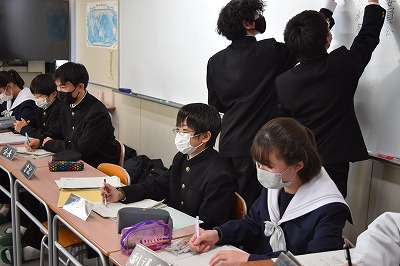 1月21日(金)に評議会が行われました。この日の評議会で最後になる3年生からの言葉を、真剣に受け止めている様子の1年生でした。前期はまだまだ不安そうな表情を浮かべることもあった1年生ですが、1年も残すところあと2カ月となった今、とても堂々とした態度で評議会にのぞんでいるなあとそんな様子に見えてきます。