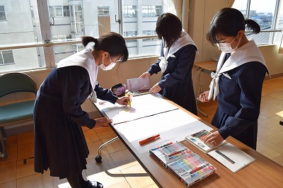 休み時間の教室、どのクラスも何やら工作をしている生徒が多くいました。ちょっとした時間を見つけて何やら取り組んでいるようです。短時間でもものすごい集中力でした。