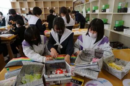 3年生の卒業を祝う教室の飾りつけも、少しずつ形ができてきました。今日は比較的時間があったので、作業が進みました。