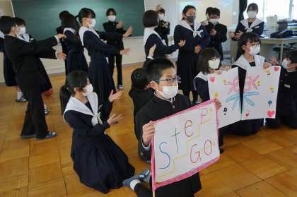 写真中 1年4組の様子です。