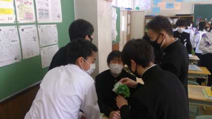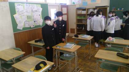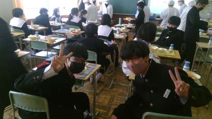 給食の時間、休み時間、学校で友達と過ごすひと時は自然と笑顔になります。こんないい笑顔がたくさん見られる岩中1年生でした。