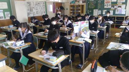 コロナ感染対策として、授業ではこれまでよりグループの時間を少なくするなど、机の隊形にも気を配ることが多いですが、学びあいは変わらず行っています。週末の今日ですが、学習に集中してのぞんでいる一年生でした。