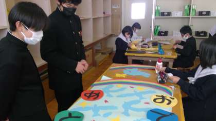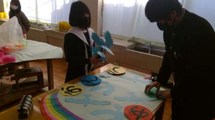 一人一人がつくったものを大切につないでいっています。完成まであと少しです。集中力の高さが光る5組の生徒たちでした。