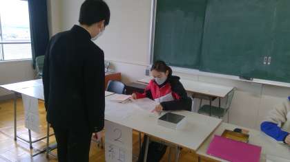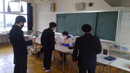 昨日から朝視聴覚室にて、公立高校の受検料の回収と清書した願書の回収を行っています。