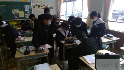 ここ最近、休み時間も学習に取り組む生徒が多くなりました。友達と宿題の確認をし合ったり、わからない問題を解きあったりとそれぞれが楽しく関わりながら頑張っています。