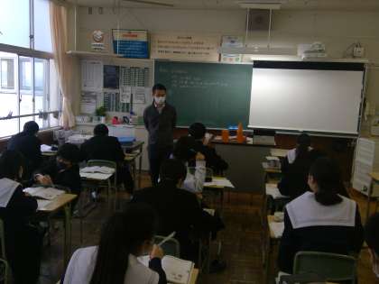 今日の数学の授業は、空間図形について学びました。難しい問題にとまどいながらもみんな真剣に授業に取り組んでいます。