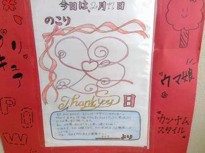 教室掲示にはそれぞれのクラスの個性が表れていて見ていて飽きません。日替わりでかわるカウントダウンカレンダーには、「今日はみんなテスト頑張ろう。終わったらみんなで楽しくお話したい。」といったクラスメイトに向けた思いが記されています。