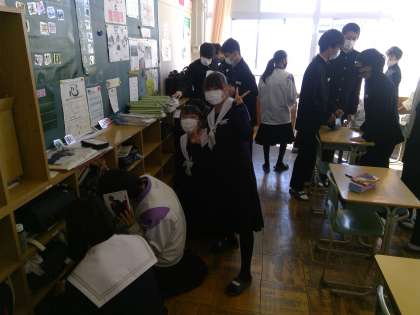 3日間にわたる学年末テストが終わりました。テストが終わって休み時間になると、「いやった〜」「終わった〜」「疲れた〜」など自然と声を出して友達と笑顔で会話する1年生の姿がありました。これまでテスト週間もふくめて長い期間勉強に励んだみなさんお疲れさまでした。