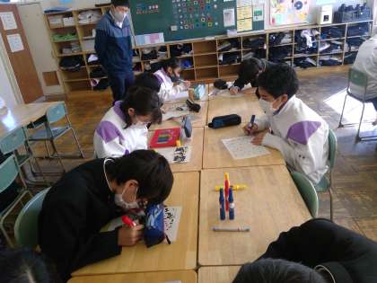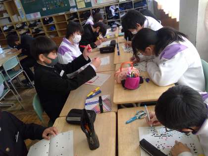 学年末テストを終えてすぐの学級の時間は予餞会にむけて何やら取り組んでいるようです。黙々と作業に取り組む中でも、気心のしれたクラスメイトと楽しい雰囲気で楽しんでいる様子が印象的でした。