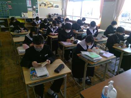 学年末テストを終え、朝は今まで通り、読書からのスタートになります。テスト勉強に追われていた先週までとはまた違った雰囲気が教室からは感じられました。みんなどこかほっとした表情で静かに読書をしている様子でした。