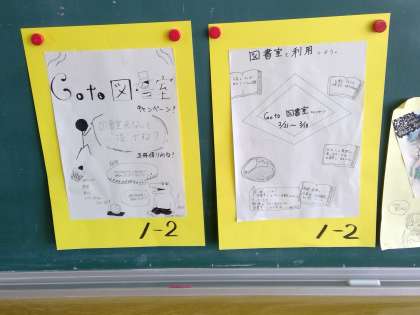 今週は図書委員による「図書室に行こう、本を借りよう」といったキャンペーン週間です。図書委員の生徒により教室にポスター掲示され、呼びかけがされていました。この機会に積極的に図書室を利用し、読書に励んでほしいと思います。