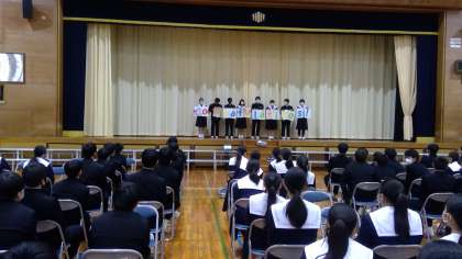 在校生の生徒代表は、直接3年生のもとへきてメッセージをくれました。