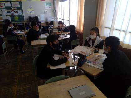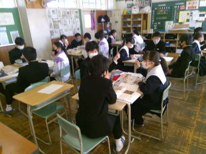 歴史の授業では貴族中心の世の中から武士中心の時代へのうつりかわりを学んでいます。武士が力をつけるきっかけとなった出来事について資料を使って学び合いを深めました。