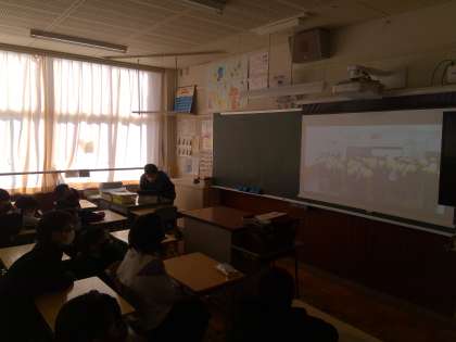 昨日の予餞会の動画をもう一度教室で見る時間をもうけた1年生、じっくりと自分たちのクラスの動画をふり返り、微笑みながら見ている姿が印象的でした。