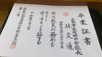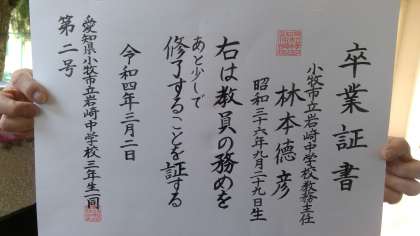 本年度、ご退職される「林校長先生」「林本教務主任」へ