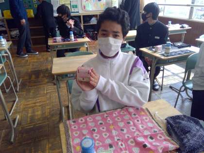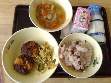 3年生にとっては一生で最後の給食になる人が多いと思います。そんなわけで今日の給食は赤飯やお祝いデザートなど豪華なメニューでした。それにあやかり1年生のみんなも美味しく給食をいただきました。
