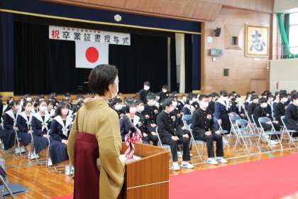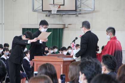 あなたが生まれたとき、いろんな想いや願いを込めてつけられた名前。担任は、一人一人の生徒の名前を大切に、丁寧に呼名し、子どもたちは大きな返事で応えてくれました。