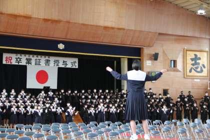 仲間と歌う最後の校歌、そして、手話を交えて歌った「糸」。
