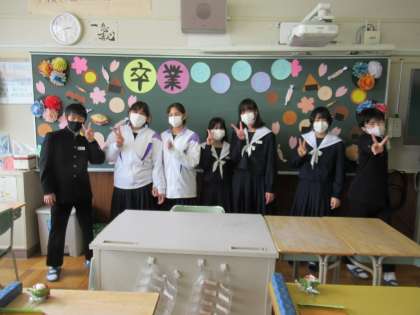 3年生の教室での記念撮影、苦労して頑張ったからこその達成感はこの上なしです。