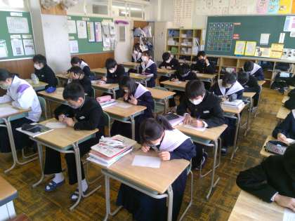 今週水曜日に行われる学習コンクールにむけて先週から朝は小テストを行っています。10点満点の小テストでほとんどの子が満点でした。全員合格をめざしてそれぞれの学級であとひとふんばりですね。頑張りましょう。