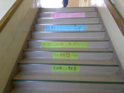 階段を上がっていくと自然と目に入る掲示物、学年生徒会が残り少ない1年生の生活でより意識して行動できるようにと制作したものです。学級のリーダーの気持ちにこたえられるよう学年みんなで生活していきましょう。