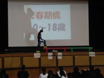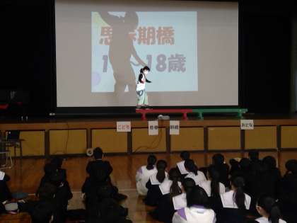 保健室の近藤先生より「生と性のカリキュラム」の授業を行っていただきました。思春期にさしかかる中学生にとって不安や苛立ちはつきものです。担任の先生方が思春期橋の渡り方を実演するなど、誰にとってもこの時期は不安や心配なことはあって当たり前であることを知り、まわりの友達と日頃考えていることを話し合ったりもしました。