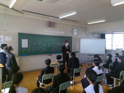 校長先生を招いての短級も今日が最後になりました。「校長先生の学生時代のお話」、「教師を志した理由」など、校長先生の魅力的な話を5組の生徒たちは聞き入っていました。月曜日から始まった校長短級、この一週間1年生の生徒たちにとって忘れられない貴重な機会となりました。