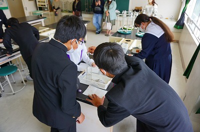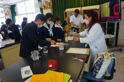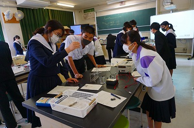 理科室では水溶液の性質を調べる実験をしていました。どのグループもよい雰囲気で協力して実験を進めていました。