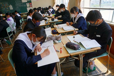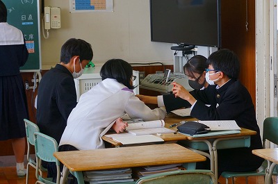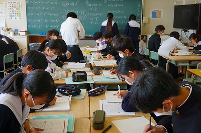 文字式の展開についてグループで学習していました。わからないところを聞き合ったり、教え合ったりする様子が見られました。