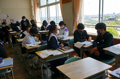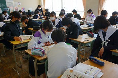 3年2組は社会の授業、3年3組は家庭科の授業をしていました。