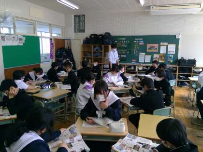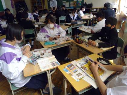 2年生の社会の授業では、難しいテーマの学び合いを行うこともあります。この日の授業では「イスラム世界で発展したものが与えた影響はどんなものか」という課題でグループで考え合いました。羅針盤や火薬などの発明が世の中にもたらしものについて、いいものもあれば、そうでないものもあることなど、活発に意見が交わされた1時間でした。