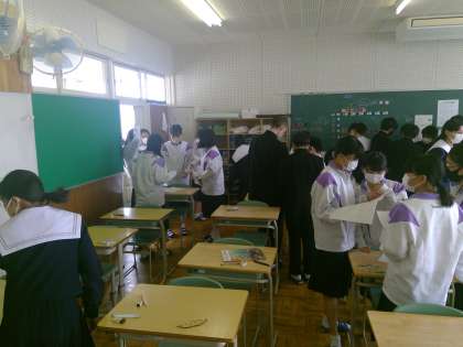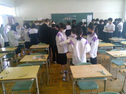 中間テスト初日の休み時間は、次の時間のテストに向けて学習に励んだり、友達と予想問題を確認したりと意欲的な姿が見られました。