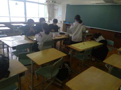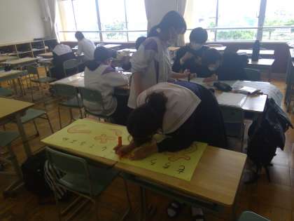 委員会の時間に学年生徒会は、佐久島に向けての生活向上キャンペーンで使う掲示物作成に取り組んでいました。みんないい顔をして活動に励んでいる様子が印象的でした。