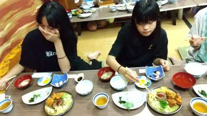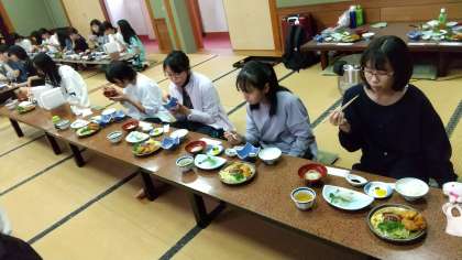今日もお刺身やタコの酢の物など、おいしそうな夕食です。 たくさん歩いたので、お腹がすきましたね。