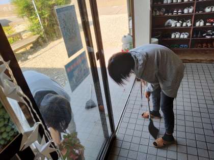 野外生活最終日感謝の気持ちをこめて、それぞれの民宿で清掃活動です!