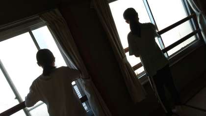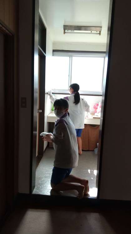 お世話になった民宿での清掃活動。 キレイにした分、気持ち良くなりますね。